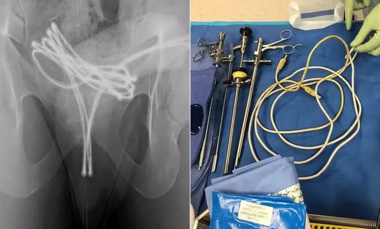 Após exames de imagem confirmarem que o cabo havia alcançado a bexiga, os médicos tentaram retirá-lo manualmente, sem sucesso. A equipe então optou por anestesiar o paciente e utilizar instrumentos especializados para extrair o objeto pela uretra.