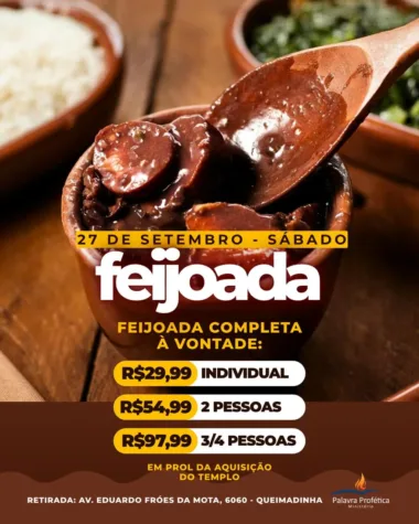 O Ministério Palavra Profética, localizado em Feira de Santana, está vivendo um momento de crescimento e conquista, marcado pelo sonho coletivo de adquirir o terreno próprio para a construção de sua igreja. Em busca de transformar esse objetivo em realidade, a comunidade promove a Feijoada Solidária, um evento que vai muito além de um prato típico da culinária brasileira: representa união, fé e esperança.