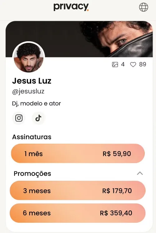 Jesus Luz escolheu o Privacy, plataforma brasileira do segmento, para marcar sua estreia. O lançamento aconteceu com um ensaio para lá de ousado, que inclui até registros de nu frontal, gerando grande repercussão entre admiradores e internautas.
