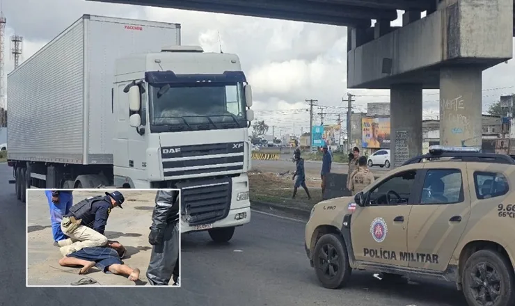 Carreta invade contramão e causa transtorno no trânsito em Feira de Santana; motorista é preso com drogas