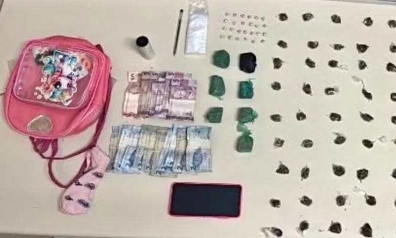 De acordo com o 16º Batalhão da Polícia Militar (BPM), equipes realizavam patrulhamento no bairro Cidade Nova, região conhecida como “Vila”, quando avistaram a mulher. Ao notar a presença dos agentes, ela jogou uma mochila infantil rosa no chão e tentou fugir.