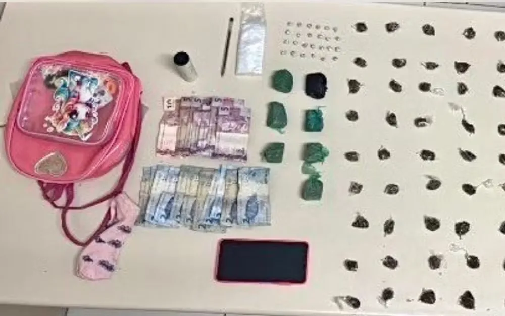 De acordo com o 16º Batalhão da Polícia Militar (BPM), equipes realizavam patrulhamento no bairro Cidade Nova, região conhecida como “Vila”, quando avistaram a mulher. Ao notar a presença dos agentes, ela jogou uma mochila infantil rosa no chão e tentou fugir.