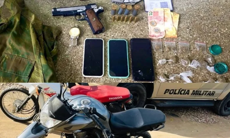 Durante a operação, os militares localizaram uma motocicleta Honda Pop 100, que havia sido roubada na noite anterior na cidade de Amélia Rodrigues. Além do veículo, foram apreendidos uma arma de fogo, um simulacro, munições, porções de drogas, celulares e outras duas motocicletas.
