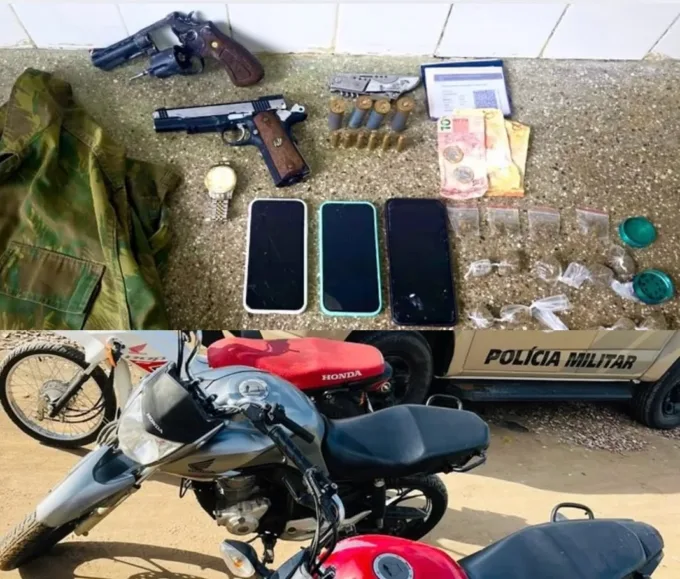 Durante a operação, os militares localizaram uma motocicleta Honda Pop 100, que havia sido roubada na noite anterior na cidade de Amélia Rodrigues. Além do veículo, foram apreendidos uma arma de fogo, um simulacro, munições, porções de drogas, celulares e outras duas motocicletas.