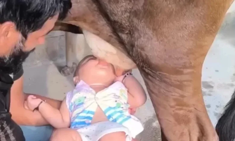 Vídeo de bebê mamando em vaca causa revolta e alerta sobre riscos à saúde