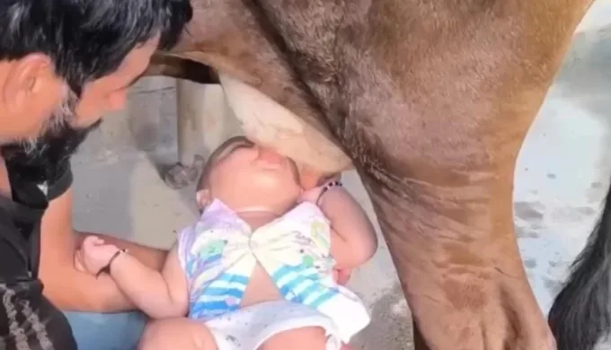 Vídeo de bebê mamando em vaca causa revolta e alerta sobre riscos à saúde