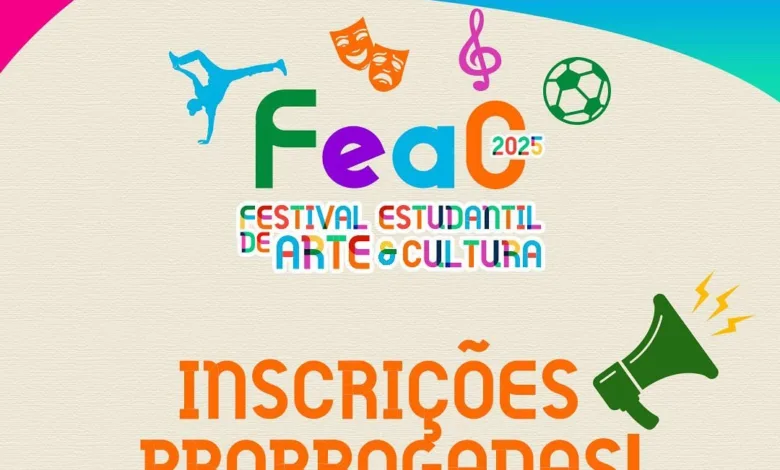 A Prefeitura de Conceição do Jacuípe, por meio da Secretaria de Cultura, Esporte e Turismo, anunciou a prorrogação das inscrições para o FEAC 2025 — Festival Estudantil de Arte e Cultura, que agora poderão ser realizadas até o dia 10 de outubro (sexta-feira).
