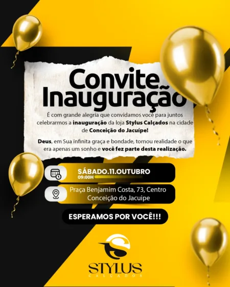 Conceição do Jacuípe ganha um novo espaço dedicado à moda e ao conforto dos pés. A Stylus Calçados inaugura oficialmente sua loja neste sábado, 11 de outubro, às 9h, na Praça Benjamim Costa, nº 73, no Centro, com uma proposta inovadora de unir beleza, estilo e bem-estar em cada passo.
