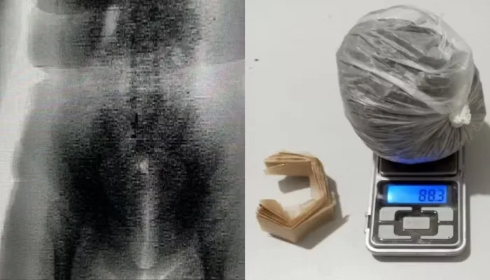 Em seguida, a mulher foi conduzida à segurança para verificação do material, sendo constatada a 88,3g de substância análoga à cannabis sativa (maconha) e 42,9g de substância análoga à cocaína. Ela foi levada para a 7ª Delegacia de Tóxicos e Entorpecentes (DTE).