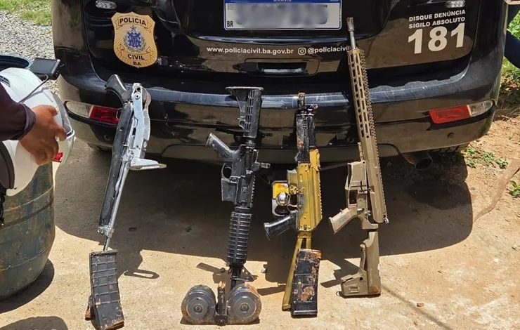 O Departamento Especializado de Investigação e Repressão ao Narcotráfico (DENARC) da Polícia Civil da Bahia realizou diligências na região do Arenoso, em Salvador, que resultaram na apreensão de três fuzis, uma espingarda calibre 12, carregadores tipo caracol e drogas. Todo o material recolhido foi encaminhado ao DENARC para perícia e demais procedimentos legais.