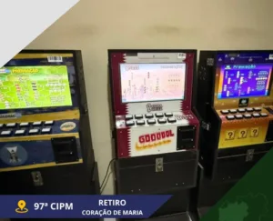 As guarnições realizavam rondas preventivas quando perceberam movimentação suspeita em um estabelecimento comercial localizado na Praça do Retiro. Durante a abordagem, foram encontradas oito máquinas de caça-níqueis em funcionamento.