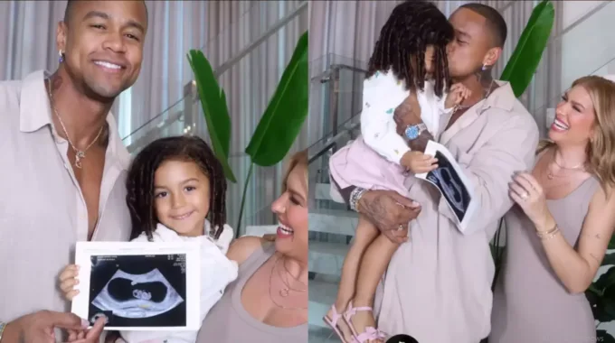 O cantor Léo Santana e a dançarina Lore Improta anunciaram nesta quarta-feira (22) que estão esperando o segundo filho. A novidade foi compartilhada nas redes sociais com um vídeo repleto de emoção, no qual a primogênita Liz, de 4 anos, aparece segurando uma ultrassonografia e correndo para os braços dos pais.