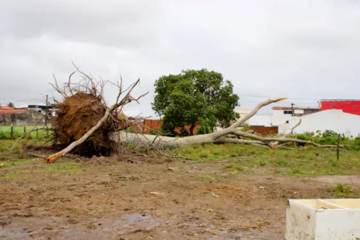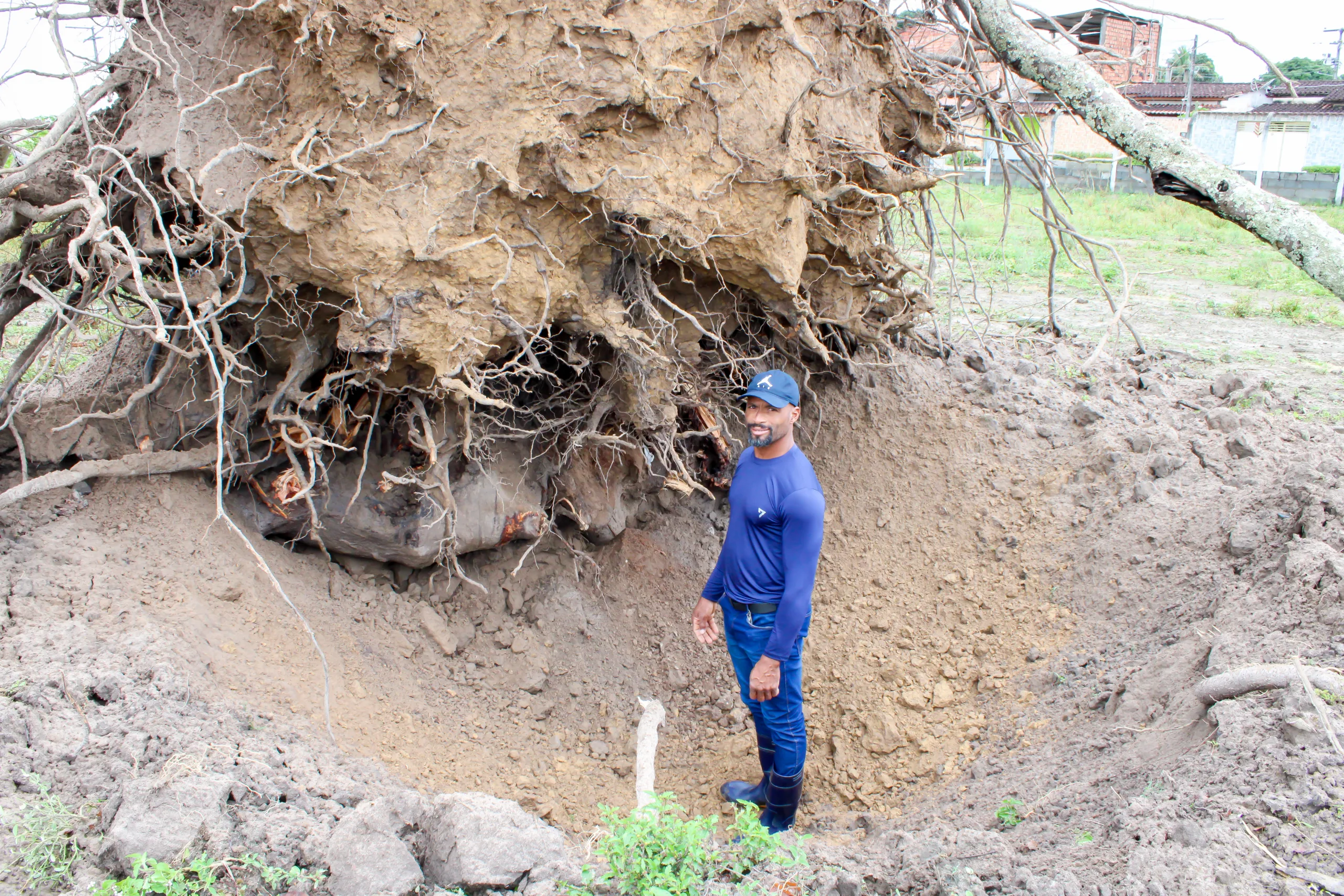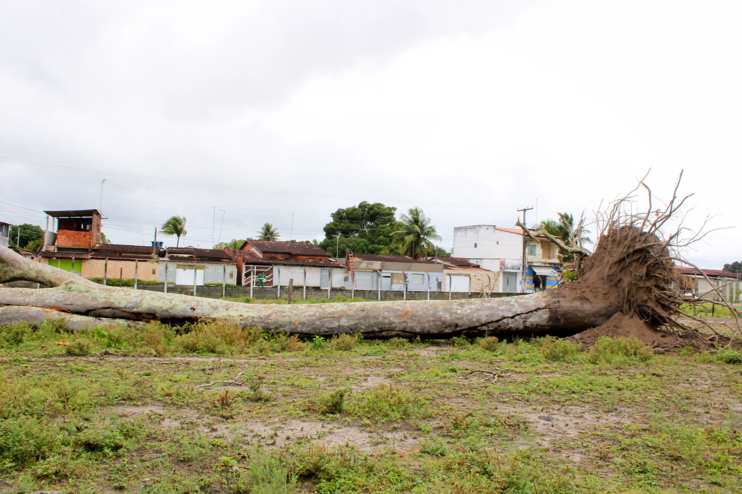 Árvore centenária cai em Conceição do Jacuípe após chuvas e ventos fortes