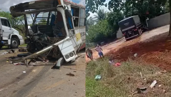 De acordo com as primeiras informações, o ônibus, conduzido por um homem identificado como Domingos, morador da cidade de Pé de Serra, colidiu frontalmente com a carreta. O impacto foi tão forte que o motorista do ônibus, que também era o proprietário do veículo, morreu no local.