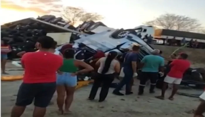 De acordo com informações da Polícia Rodoviária Federal (PRF), o acidente ocorreu depois que a carroceria do veículo, que transportava uma carga de pneus, se desprendeu da cabine.