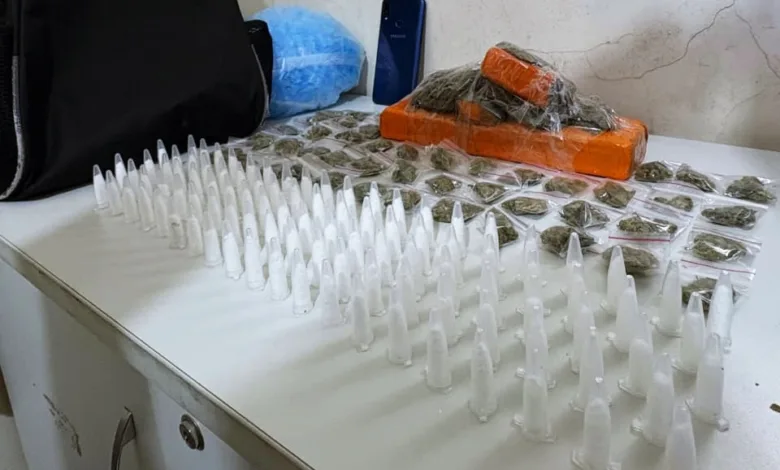 Ao chegar ao local indicado, os policiais localizaram uma suspeita com as mesmas características descritas na denúncia. Durante a abordagem, a equipe encontrou grande quantidade de drogas e materiais para embalagem dentro da mochila.
