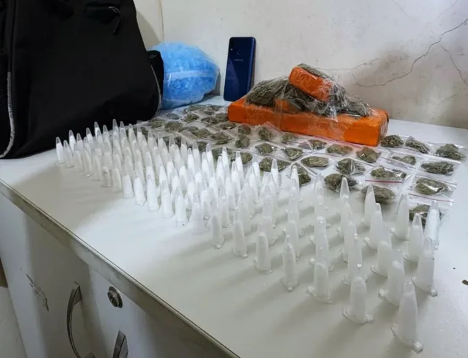 Ao chegar ao local indicado, os policiais localizaram uma suspeita com as mesmas características descritas na denúncia. Durante a abordagem, a equipe encontrou grande quantidade de drogas e materiais para embalagem dentro da mochila.