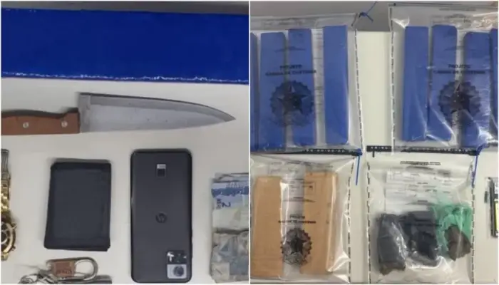 Na primeira ação, um homem foi detido após tentar fugir em um veículo ao notar a presença dos policiais. Durante a abordagem, foram encontrados um tablete de maconha, pesando aproximadamente 1 quilo, e uma faca.