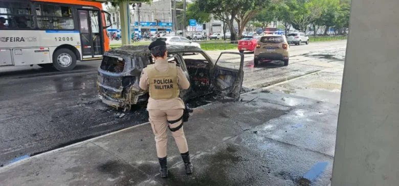 Um Jeep Renegade pegou fogo na manhã desta terça-feira (29) enquanto trafegava pela Avenida Getúlio Vargas, no trecho do cruzamento com a Avenida João Durval, em Feira de Santana. O veículo foi consumido pelas chamas em poucos minutos.