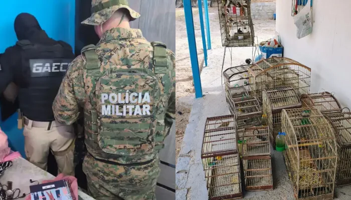 Durante o cumprimento dos mandados em Valente, uma equipe da PM e do MP-BA apreendeu uma espingarda calibre .32 e diversos animais silvestres mantidos em cativeiro, incluindo canários-da-terra, cardeais e jabutis. Um homem de 72 anos foi detido no local.