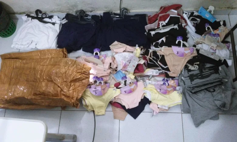 Durante a abordagem, os policiais encontraram diversas roupas íntimas masculinas e femininas escondidas em sacolas confeccionadas com mecanismos para burlar os sensores de segurança da loja. Também foram apreendidos dois celulares e o veículo utilizado na fuga.