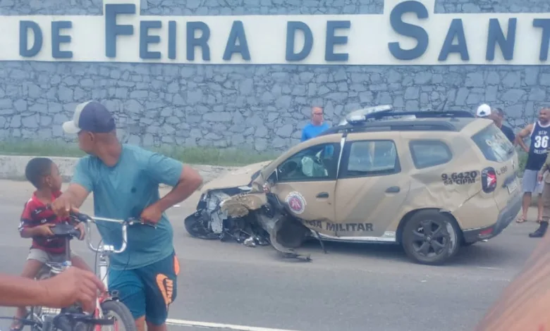 Policial militar passa mal, perde o controle de viatura e colide em Feira de Santana