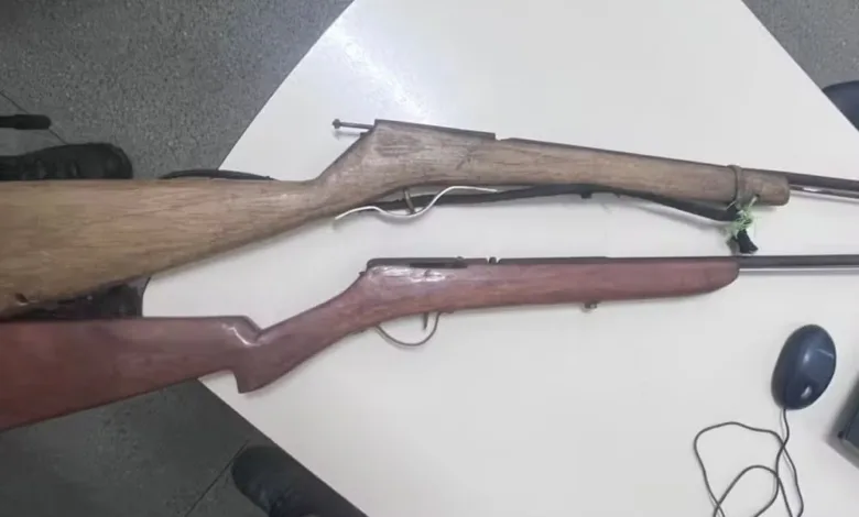 Ao chegarem na residência, os militares encontraram a vítima visivelmente abalada e localizaram duas armas de fogo caseiras em posse do suspeito. O homem foi detido e o material apreendido.