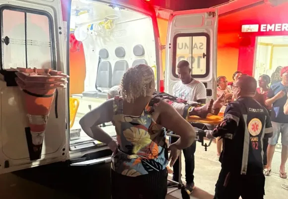 Vítima identificada como Marcelo Tubaína foi socorrida para o Hospital Ângelo Martins