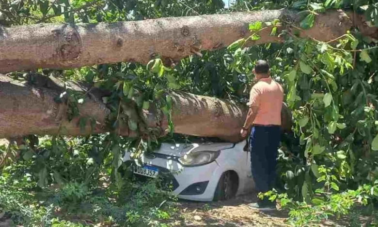 Carro é esmagado por árvore em Feira de Santana