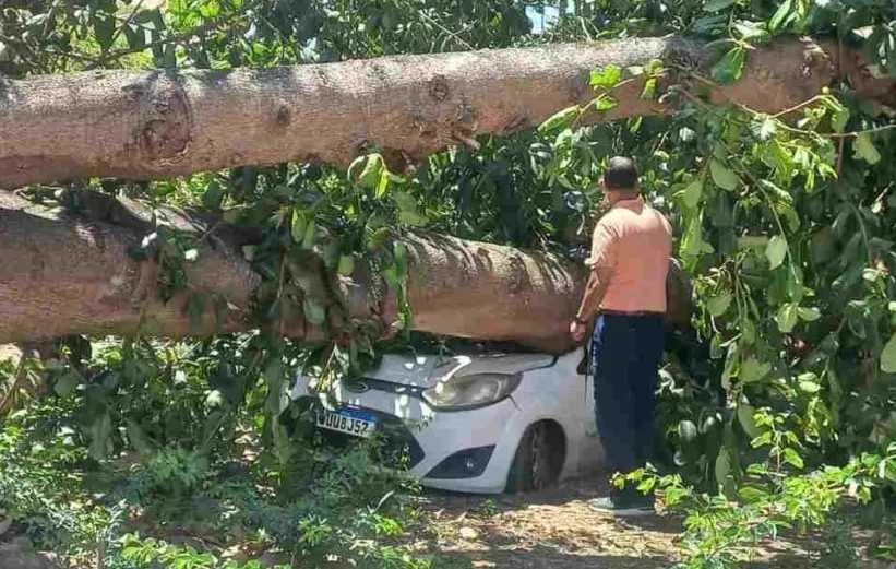 Um susto marcou a manhã de domingo (9) no bairro Campo Limpo, em Feira de Santana. Uma árvore de grande porte caiu e atingiu um carro que estava estacionado na Rua Professora Bertolina Carneiro. Apesar do impacto, ninguém ficou ferido.