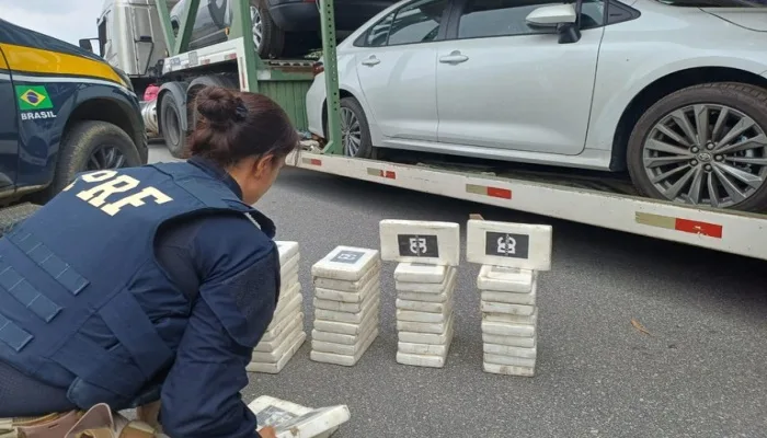 Durante abordagem a um caminhão-cegonha no km 830 da BR-116, os policiais fiscalizavam tanto a carreta quanto os veículos transportados, quando localizaram, no interior de um dos automóveis, 65,5 kg de skunk e 54,5 kg de cocaína, totalizando 120 kg de entorpecentes.