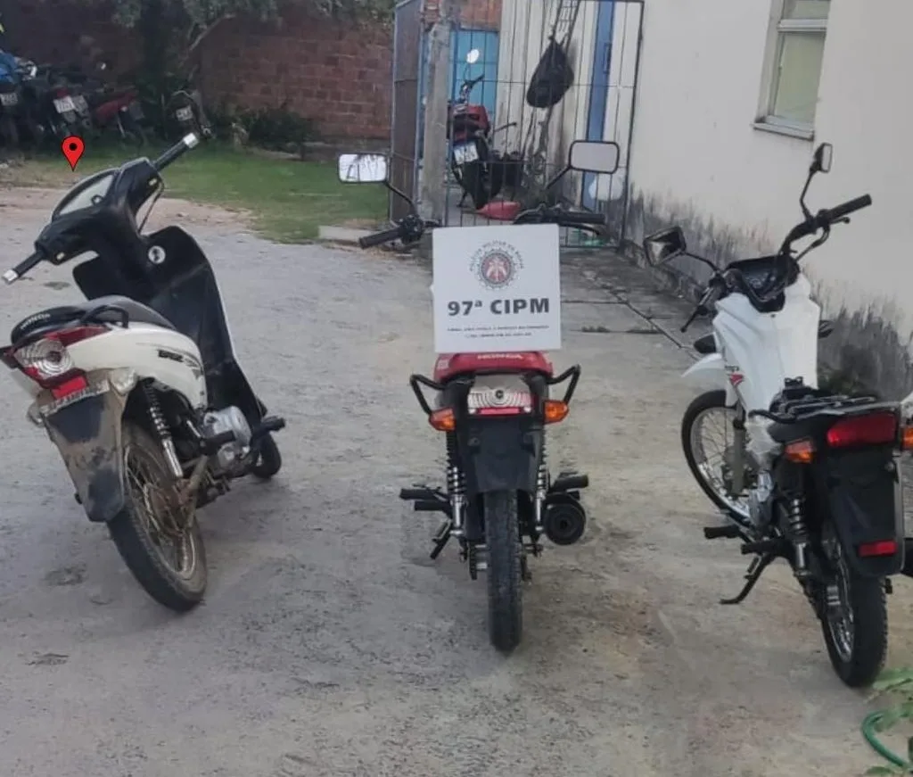 Durante uma operação de patrulhamento na BA-504, na zona rural de Irará, uma guarnição da 97ª Companhia Independente da Polícia Militar (CIPM) recuperou três motocicletas roubadas e identificou indícios da atuação de um grupo criminoso responsável por diversos delitos na região. A ação aconteceu nesta segunda-feira (17/11).
