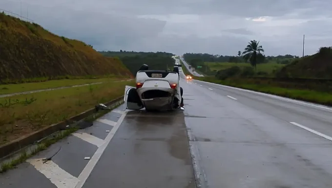 Um motorista, ainda não identificado, ficou ferido após perder o controle do veículo e capotar na tarde deste sábado (22), na BR-101, em um trecho próximo ao galpão da indústria Mondial, no município de Conceição do Jacuípe.
