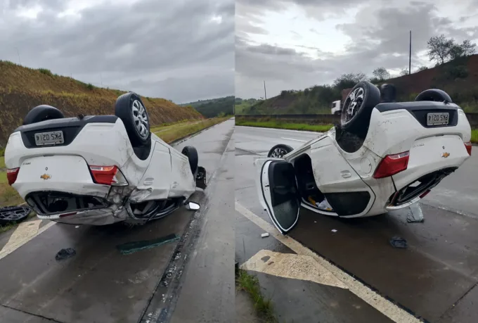O carro parou fora da pista, totalmente virado, com as quatro rodas para cima. Ainda não há informações oficiais sobre o que teria provocado o acidente.
