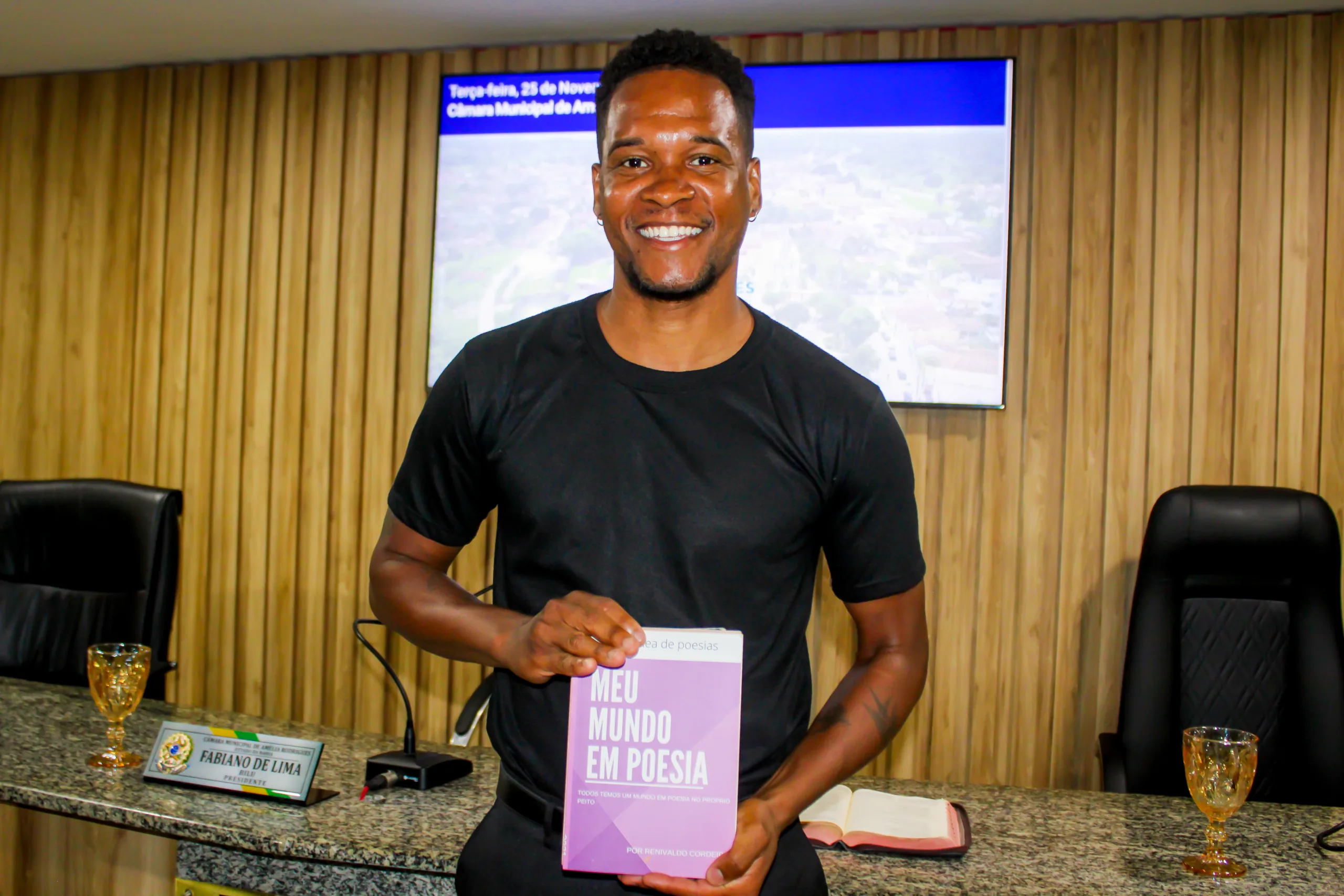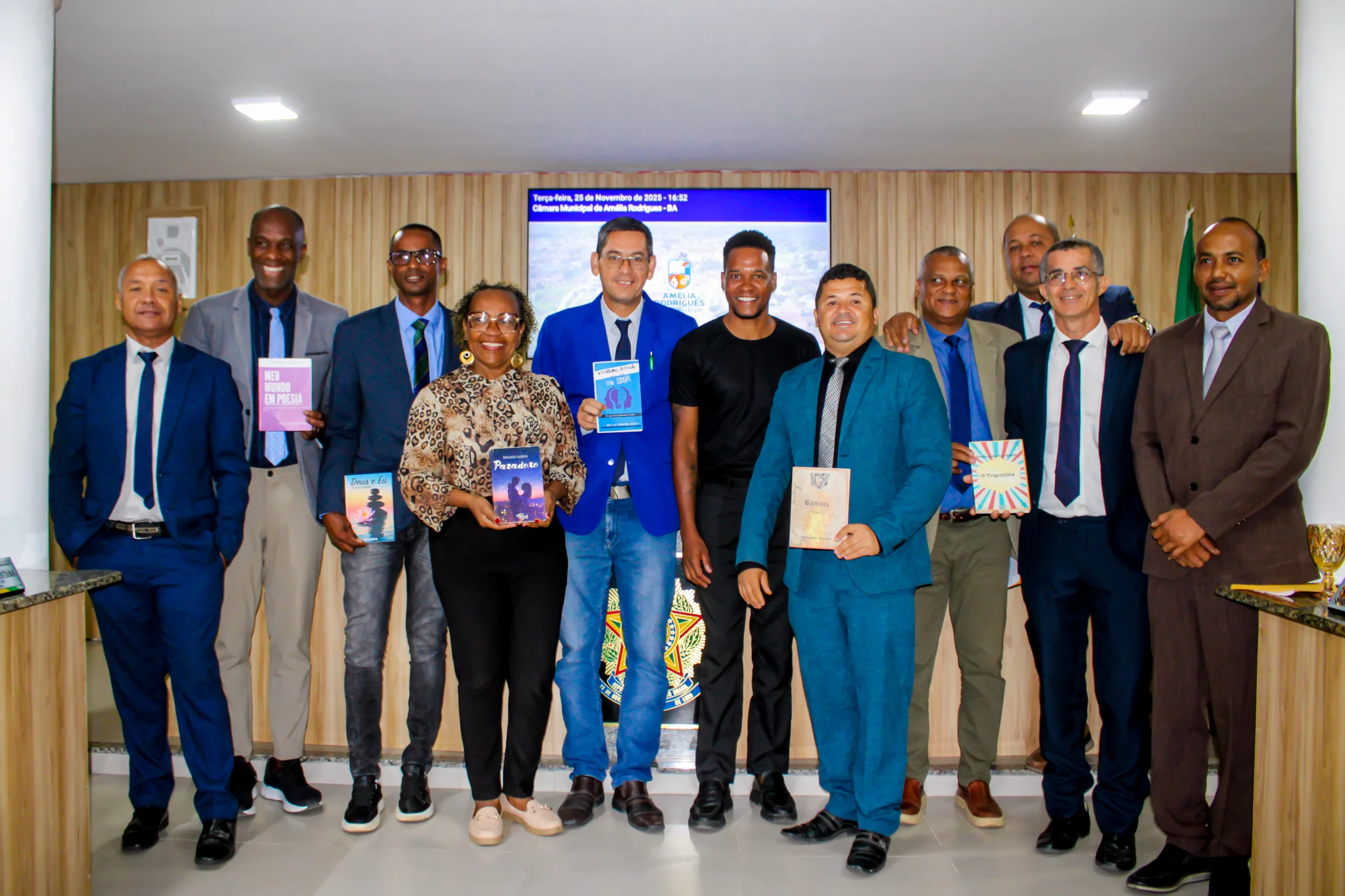 A Câmara Municipal de Amélia Rodrigues recebeu, nesta terça-feira (25/11), o escritor, poeta e compositor ameliense Renivaldo Cordeiro, empossado como membro efetivo da Academia Metropolitana de Letras e Artes de Feira de Santana no dia 4 de novembro. A homenagem foi proposta pelos vereadores José Silveira (REPUBLICANOS) e Lucas Pires (PCdoB).