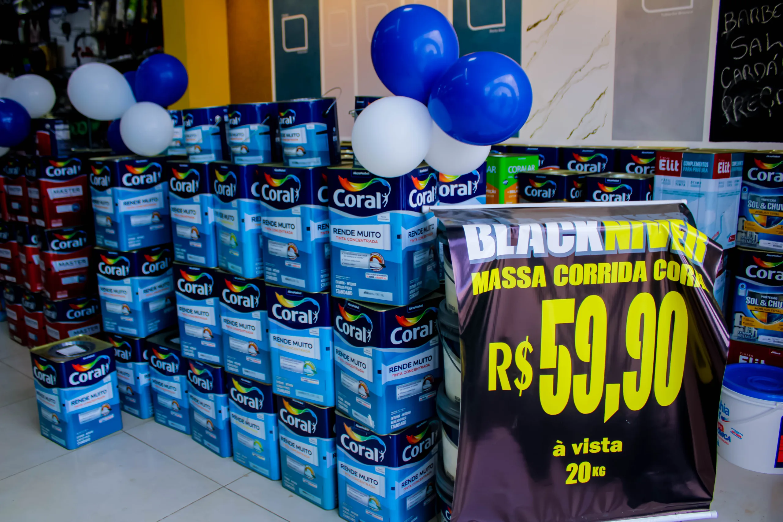 A loja também preparou um Limpa Estoque, com produtos selecionados com 50% de desconto, reforçando o clima de Black Friday e oferecendo oportunidades reais de economia para quem planeja pintar ou reformar.