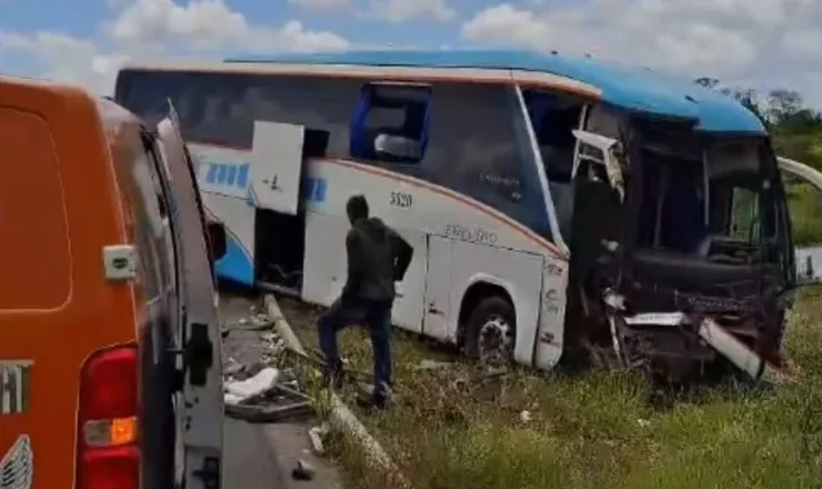 Grave colisão entre ônibus e caminhão na BR-324 deixa dois mortos e um ferido
