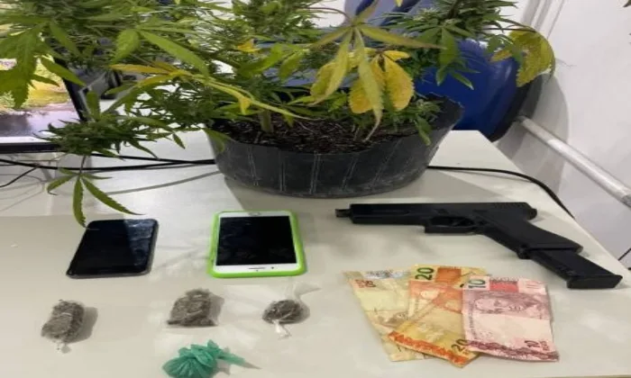 Durante a abordagem, os agentes encontraram um simulacro de pistola e duas porções de maconha com os adolescentes. Ao serem questionados, eles afirmaram que haviam adquirido o material com um jovem identificado como Antonio Yanbert de Oliveira Carneiro, de 18 anos.