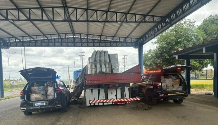 Na manhã desta quarta-feira (17/12), uma ação conjunta entre a Polícia Rodoviária Federal (PRF) e a Polícia Federal (PF) resultou na apreensão de 330 quilos de maconha e 10 quilos de pasta-base de cocaína. A interceptação ocorreu no posto da PRF localizado na BR-116 Sul, em Feira de Santana (BA).