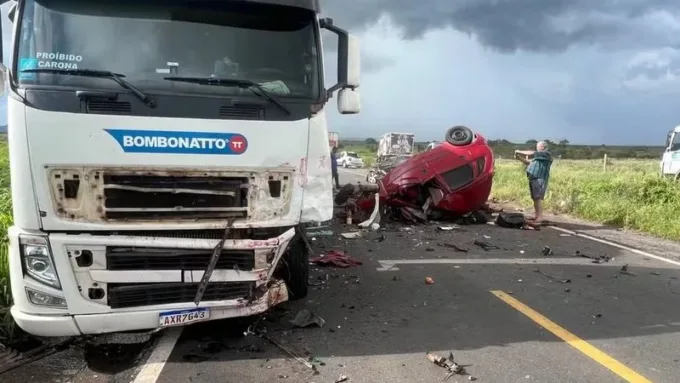 Colisão entre carro e caminhão na BR-135 mata cinco pessoas da mesma família