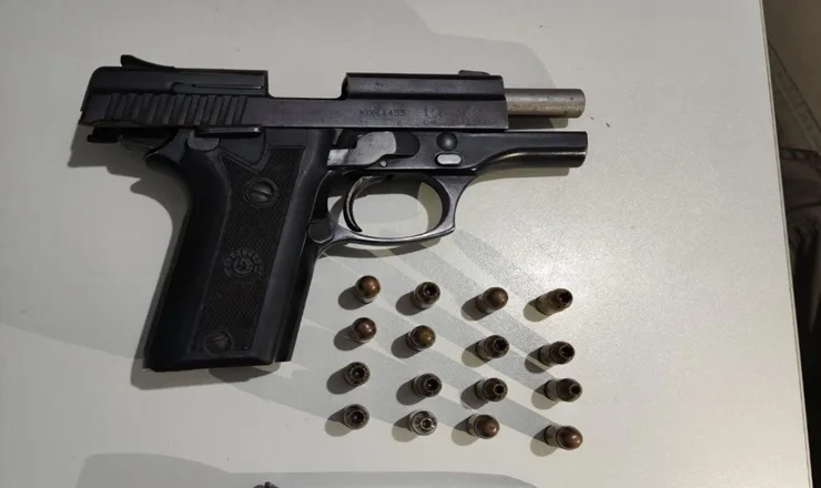 Durante a abordagem, o suspeito confirmou a existência de uma arma no interior do carro. Em seguida, os policiais realizaram a revista e encontraram uma pistola calibre .380, municiada com 16 cartuchos.