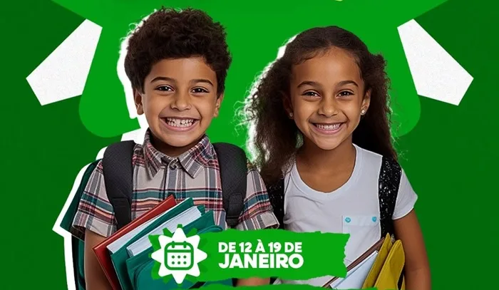 As matrículas acontecerão de 12 a 19 de janeiro, das 8h às 12h e das 13h às 17h, e devem ser realizadas presencialmente nas unidades escolares. Neste primeiro momento, o atendimento será destinado exclusivamente às novas matrículas, tanto para as escolas regulares quanto para as escolas militares do município.