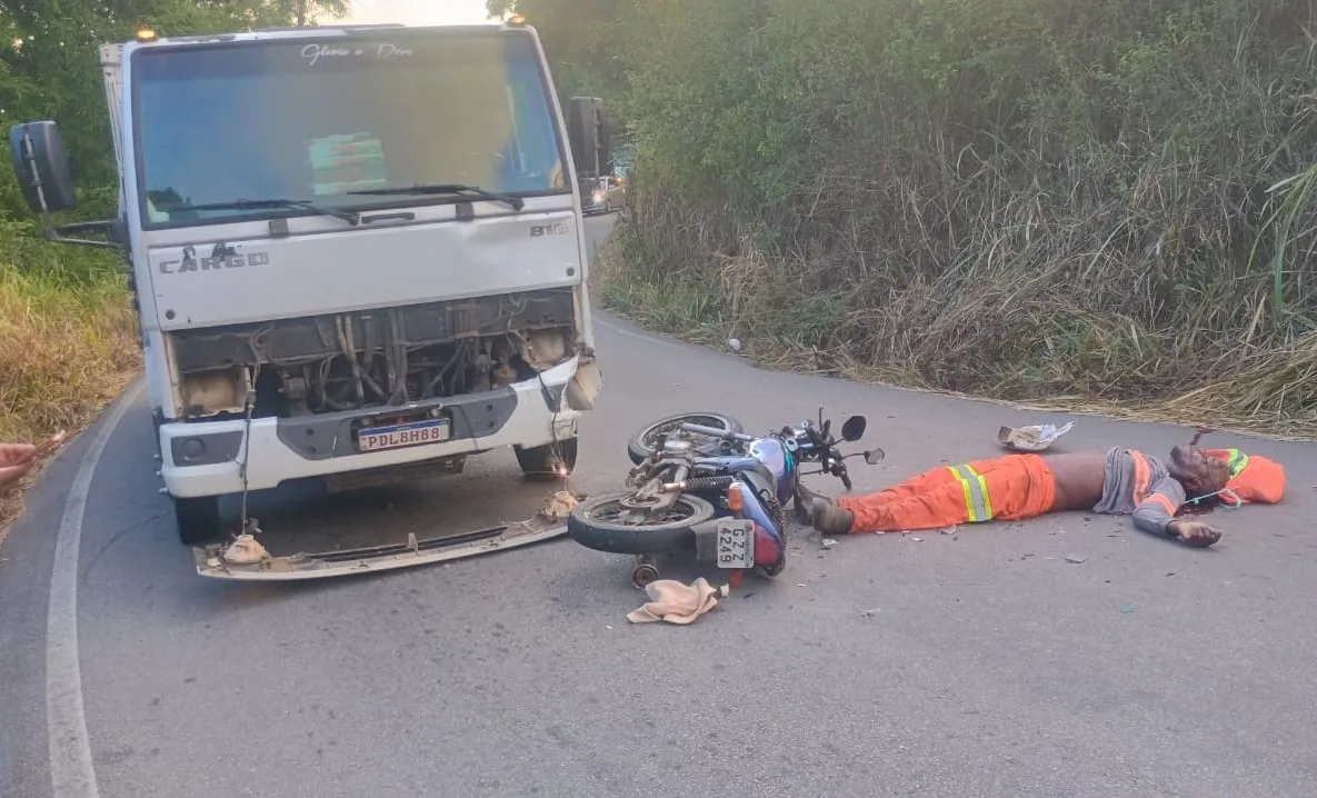 Motociclista morre após colisão com caminhão na BA-084, em Oliveira dos Campinhos