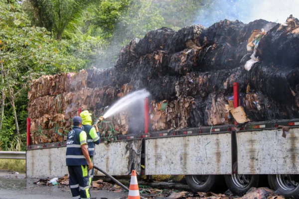 Um caminhão carregado de papelão para reciclagem pegou fogo no início da tarde desta terça-feira (13) na BR-324, no km 547, trecho conhecido como Ladeira da Imbira, no município de Amélia Rodrigues. O incidente aconteceu no sentido Salvador e provocou engarrafamento ao longo da tarde.