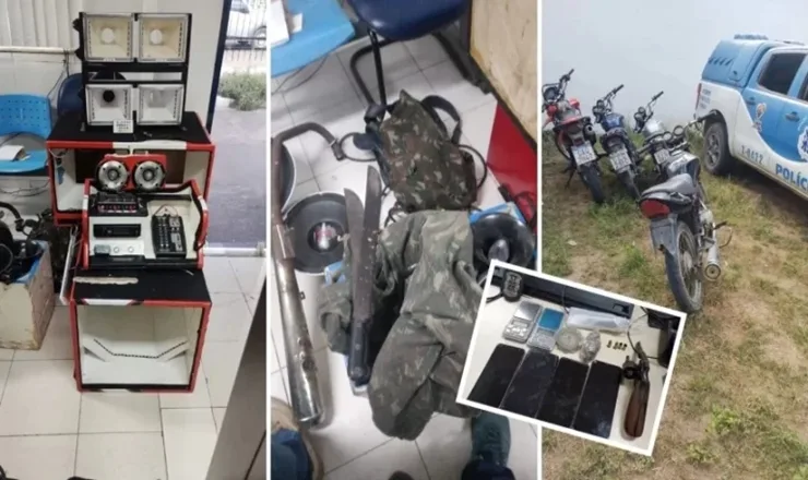 Ainda no local, também foram apreendidos aparelhos celulares, balanças de precisão, facões, roupas camufladas, um som automotivo e peças de motocicleta, materiais que podem estar relacionados à prática de crimes na região.