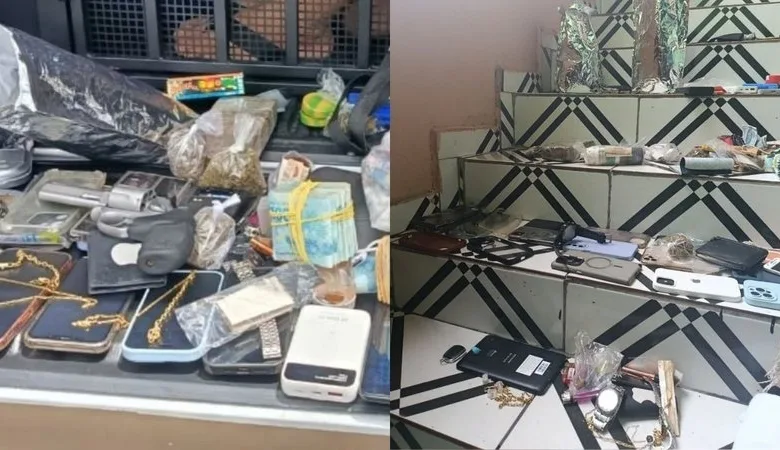 Ainda segundo a polícia, também foram apreendidos dinheiro em espécie, diversos aparelhos celulares, correntes de ouro e outros objetos que podem ser provenientes de roubos ou de atividades ilícitas.