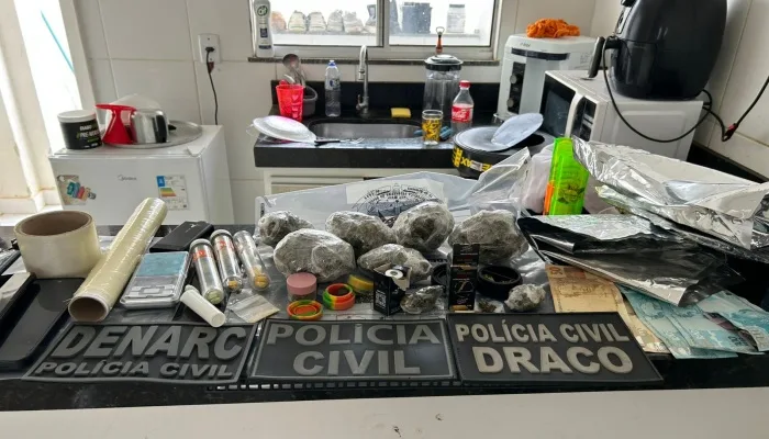 Durante o cumprimento das ordens judiciais, um homem, de 32 anos, que atuava como motorista, foi preso em flagrante por tráfico de drogas. Com ele, foram apreendidas porções de skank, comprimidos de ecstasy, MDA, haxixe, medicamentos antidepressivos, balança de precisão, dinheiro em espécie e um veículo. As outras duas pessoas, uma mulher de 29 anos e um homem de 25, foram conduzidas à unidade policial para prestar esclarecimentos, foram ouvidas e, inicialmente, responderão a inquérito policial em liberdade.