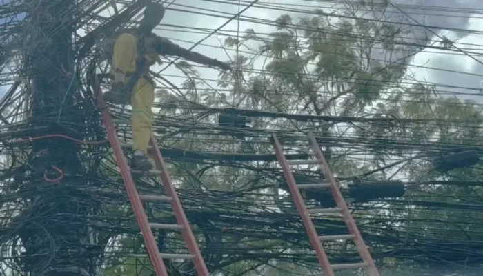 Técnico de internet sofre choque elétrico e fica gravemente ferido após ficar preso aos fios de poste