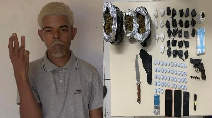 Após cessarem os disparos, o suspeito, conhecido pelo apelido de “Gaguinho”, foi encontrado baleado. Com ele, os policiais apreenderam um revólver calibre 38 e uma mochila contendo drogas e diversos materiais. Entre os itens apreendidos estavam mais de 1,5 quilo de maconha, 23 porções fracionadas da mesma substância e cerca de 50 porções de cocaína, incluindo pinos prontos para comercialização. Também foram encontrados celulares, uma balança de precisão, lanterna, faca, coldre e outros objetos.