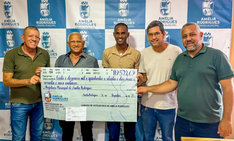 A Prefeitura de Amélia Rodrigues recebeu, a maior devolução de recursos já realizada pela Câmara Municipal de Amélia Rodrigues. Ao todo, R$ 119.572,69 retornaram aos cofres do Executivo, valor referente à economia do orçamento do Legislativo no exercício financeiro de 2025.
